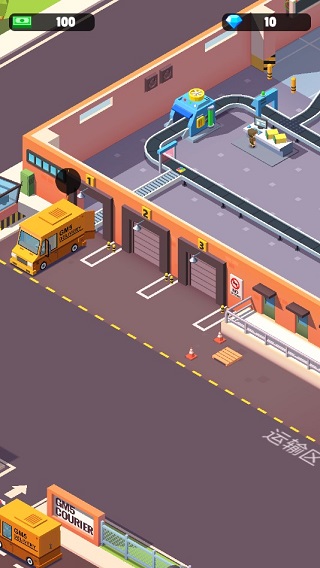 这是一款操作极其简单的放置模拟经营游戏。从只有两台车、一台打包机的快递公司开始,我们需要不断揽收包裹,运回公司进行分拣。