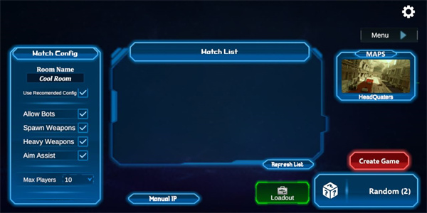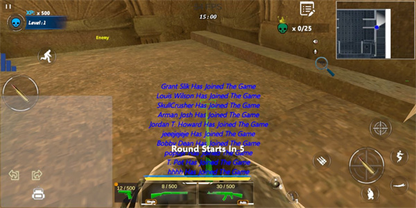 最新版本的玩法挺有意思的,输入名字就能开始,选择人数、武器和地图后点击“create game”就能进入战场了。操作用虚拟键盘控制,射击、换弹、趴下这些动作都能完成。击败25个敌人就能赢,还能通过地图上的红色点找到对手的位置。