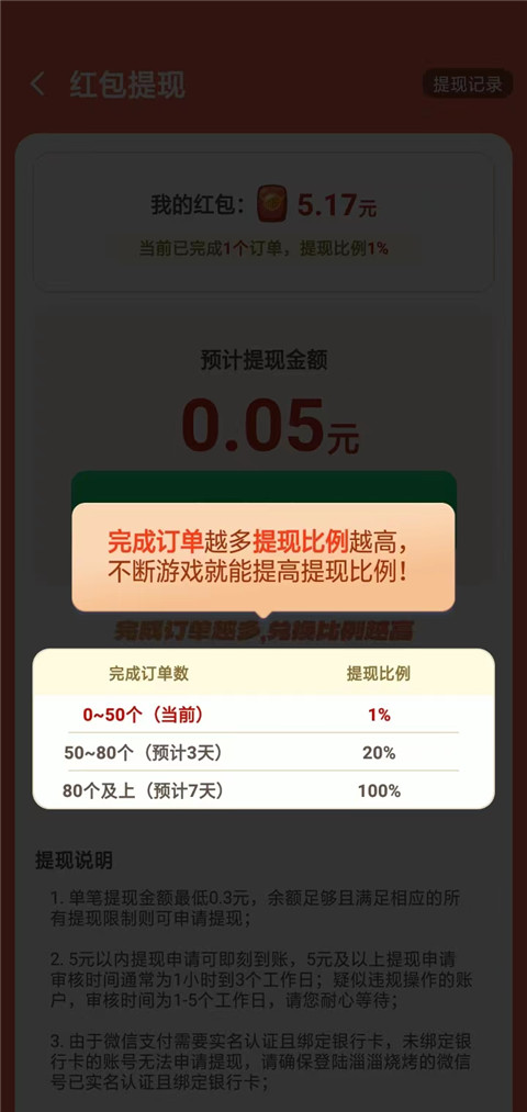 2、当你的订单越来越多,完成的订单也就越来越多,那么提现的比例也就越高,不断游戏还能提高提现的比例;