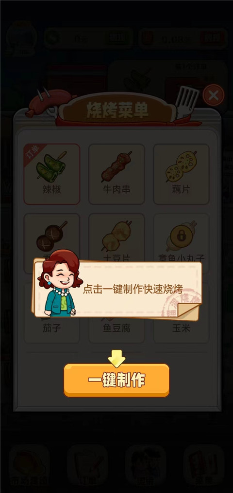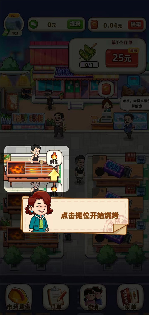 在游戏中玩家将经营一个烧烤摊位。根据客人的需要,选择合适的食材进行烧烤,控制温度和时间,烤出美味的烧烤食品。关注客人的耐心指数,及时为他们提供满意的食物,以获得更多的红包收入。