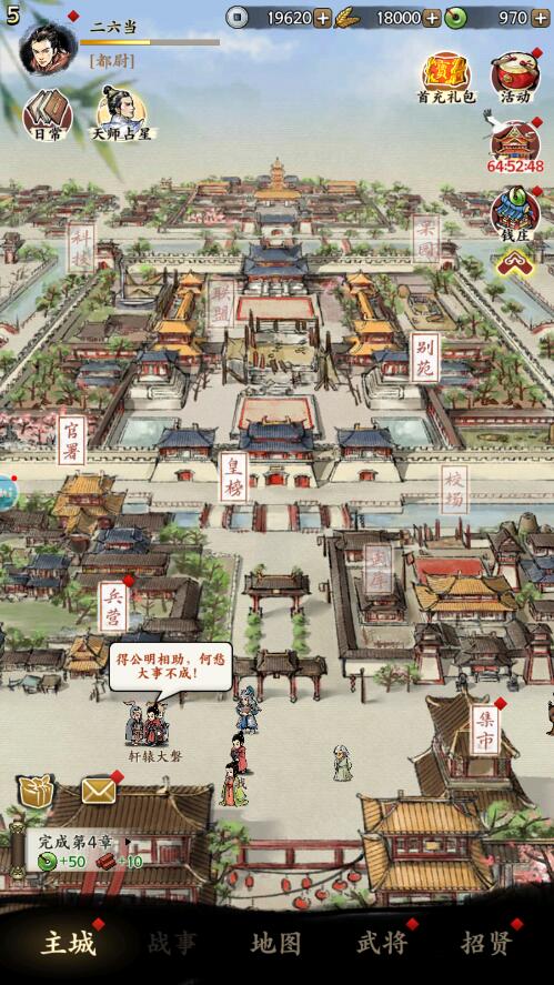 游戏中注重策略性,兵种之间互相克制,战斗采用九宫格形式,地形和随机事件增加了变化性。此外,游戏还融入了城池经营元素,玩家需要平衡资源和发展。美术方面,武将采用国画风格,场景精美,剧情还原历史与演义。最近的更新还新增了“征战疆场”玩法和战斗数据统计功能。