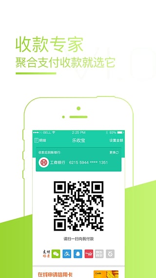 乐收宝app是专注线上收款支付服务的一款移动聚合支付收款平台,该平台针对时下广大年轻用户的日常支付收款需求,整合支付宝、微信、银联快捷、银联钱包、二维码支付等多种支付方式,涵盖零售百货、电影院线、连锁商超和出租车等多个行业,而且费率低至0.3%,365天秒到银行卡,让收款支付更加简单、安全、快速。同时还与与国内30多家银行以及第三方支付等机构建立合作关系,不用购买任何POS机或者手刷,邀请好友注册使用,还有88元的奖励,奖励可以提现!快来下载试试吧!