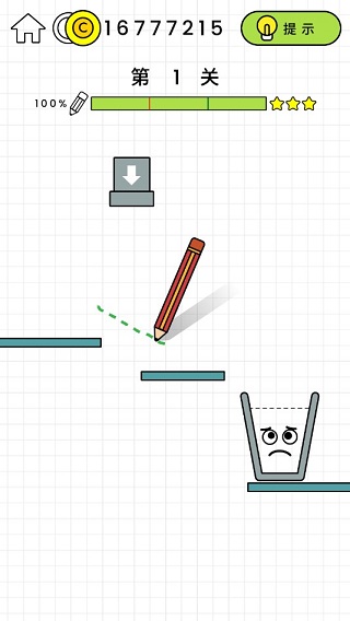 游戏的玩法非常简单,我们手指按住屏幕移动即可画出线条,这些线条会变成“硬铁丝”一样的效果,然后放开手指,水管里面的水流就可以随着我们画的障碍流到杯子里。