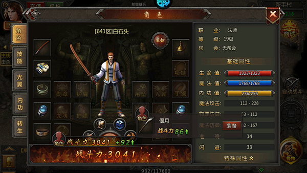 2、点击角色可以看到当前角色属性、穿戴装备等信息