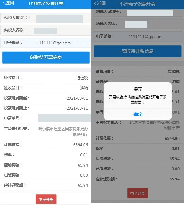 点击【预缴开票】,确认信息无误后点击【电子开票】。