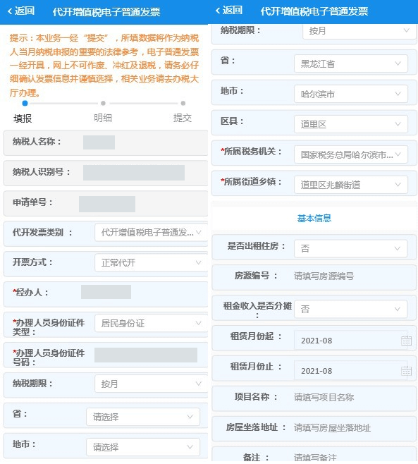 进入【代开增值税电子普通发票申请】功能后,请注意查看提示信息。