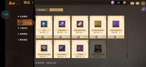 魔晶商店:魔晶兑换钻石,后期体力用钻石购买200-200体力,后期体力消耗巨大,后面各项资源图体力成倍上涨。体力包可购买。