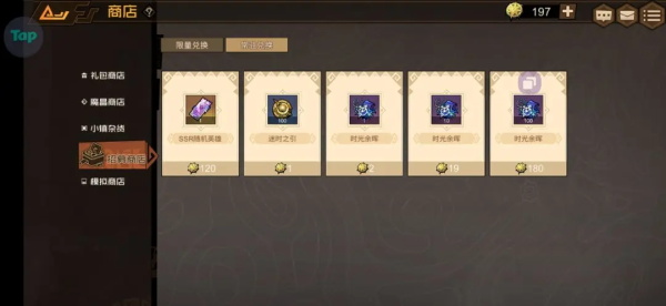 招募商店:一次性:除了兑换前期米娅及艾丽西亚。建议不要兑换看下图后期迷时之引和时光余晖要用,时光余晖建议兑换180币的。