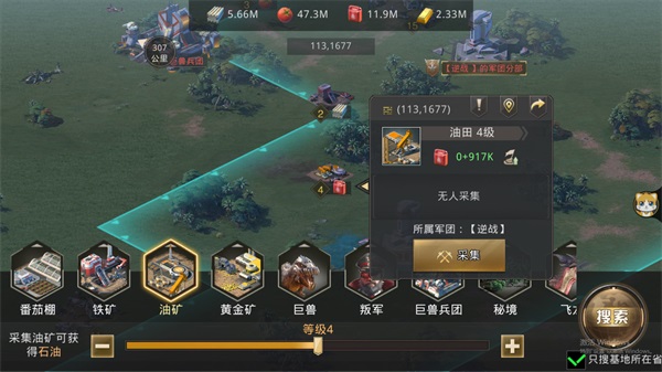 其次是大地图的采集,指挥官们可以指挥巨兽和士兵们去大地图的采矿点进行资源的采集,指挥官们可以在大地图上多多扩张,这样可供采集的区域就会更大哦~