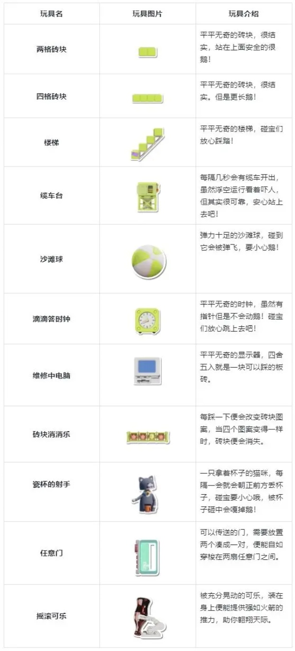 这些玩具被分为了通路型、陷阱型、附着型、移动型和远程型五类。请大家看下面的图片介绍鹅!