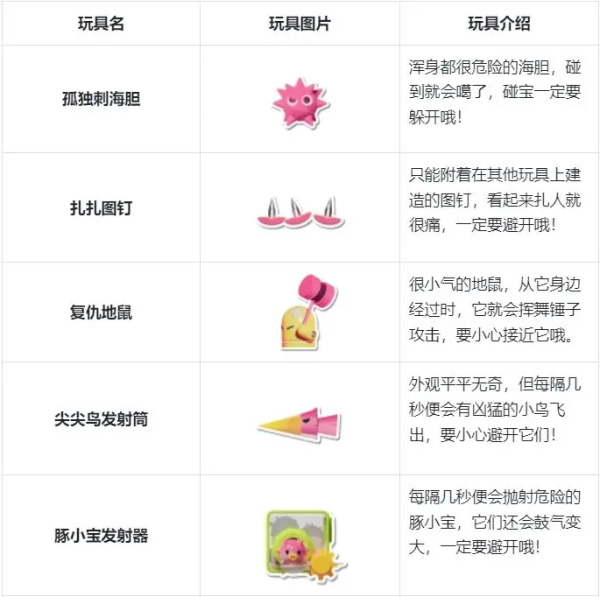 是会射出各类飞行物的玩具,有的对碰宝有利有的对碰宝有害,请碰宝们仔细鉴别哦!