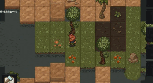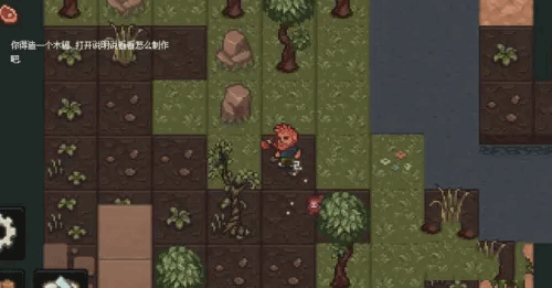 3、进入游戏后,会有教程指导你每一步该做什么,还是那句话,要致富先撸树,捶倒一棵树后,做个木斧,多砍几颗先。(将材料一次次拖进制造格,树枝空手加工成棍,原木加工成木,加工后记得把产物拖回背包,否则很大几率会消失。加工读条点叉子可以跳过。)