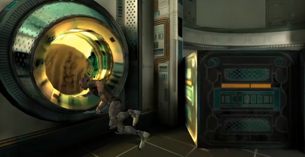 4、跟手镯对话完毕,往前走一段路即可找到阀门,走到显示屏前即可开门