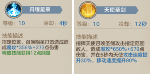其次最后两个技能:闪耀星辰、天使圣剑。