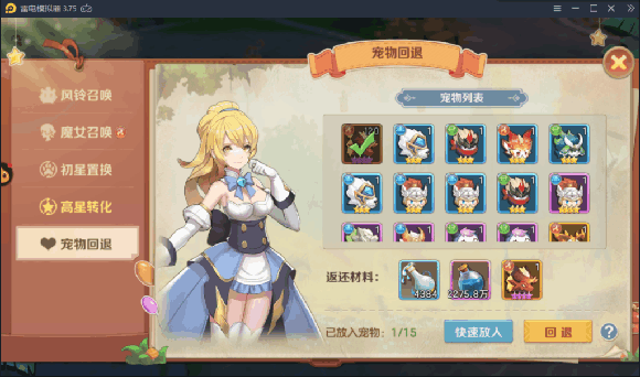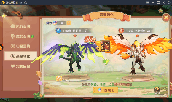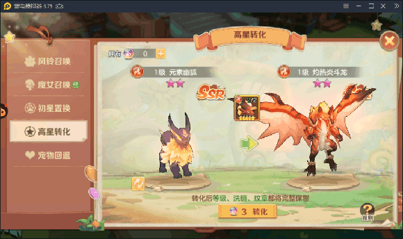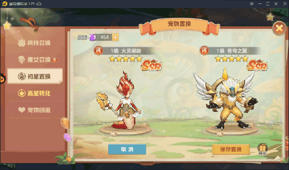 宠物升星需要5星的宠物作为材料才能成功,如果所需材料就是抽不出怎么办,同样在唤灵界面里有个初星置换可以置换同系别宠物,这样会极大缩小范围,更容易获取你想要的5星宠物。