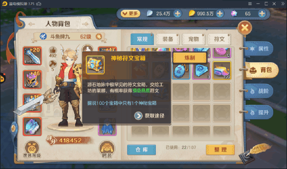 我们在前期熔炼符文宝箱只熔炼黄金白银即可,把神秘符文宝箱给存好了,68级在炼制的话就可以练出闪红符文碎片了,不然只能出红色碎片。