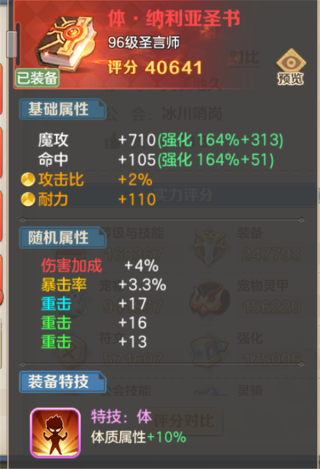 披风可以选择重击或者体质比,灵骑的两个天赋也都选体质,灵骑特性推荐的话是高级抗暴,重击在装备及符文上进行叠加在叠加到1085之后就全堆体质,因为再往上堆得话收益并不是很大,然而体质却能大大增强输出和生存空间,生命达到100w不是问题,如下面这幅图。
