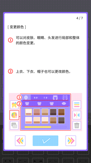 2、皮肤、头发、眼睛、服装、帽子等均可随意变更颜色。