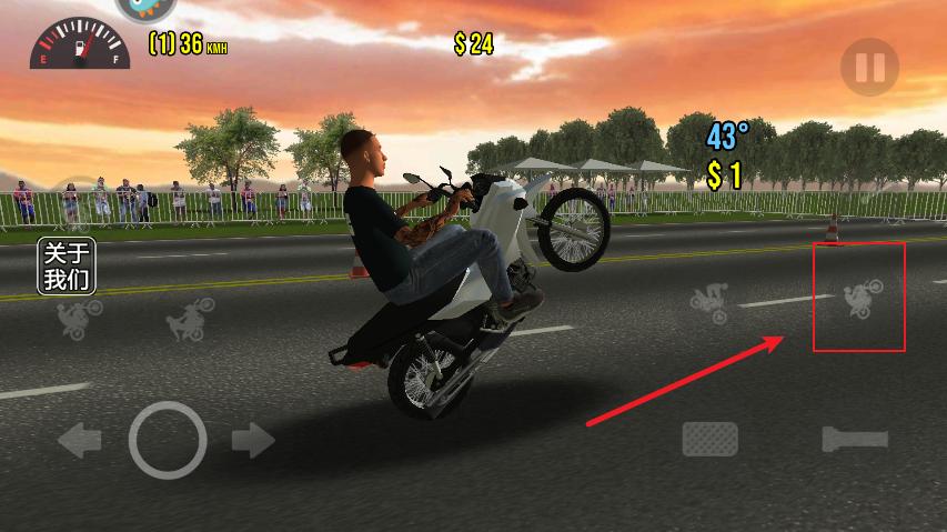 5、点击图中按钮的位置可以将车头翘起来,完成一系列的高的难度动作。