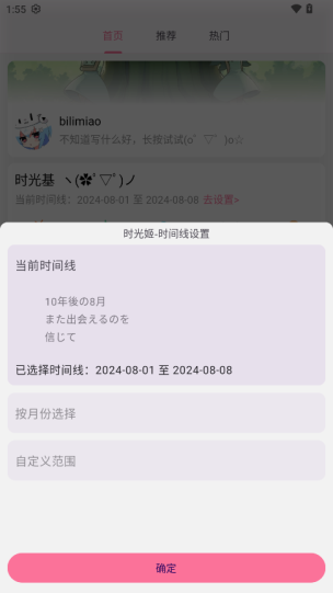 首页时间线显示部分点击进入设置时间范围
