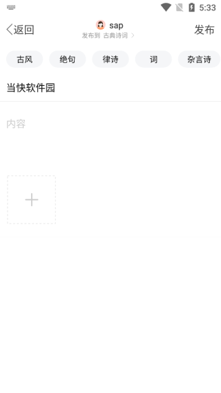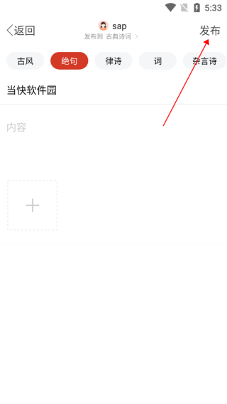 3、选择要发表的作品类型,如古典诗词,现代诗歌等等