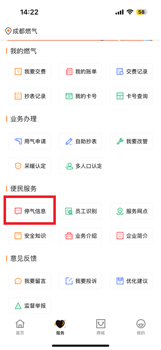 软件的设计也很贴心,有很多专业又实用的功能。比如查询停气信息特别简单,在“更多服务”里找到“停气信息”,输入街道小区名字就能查到。另外,关于如何选购燃气具、怎么判断燃气泄漏以及发现漏气后该咋办等问题,app里也有详细解答,特别是提到一定要选有熄火保护装置的灶具和强排式热水器,这对安全来说非常重要。