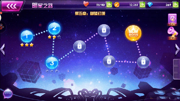 继承传统AU模式,并独创泡泡斗舞玩法,指尖律动胜点角逐,嗨爆全场;同时还可勇闯明星之路,PK偶像BOSS,赢取三星大礼包哦~