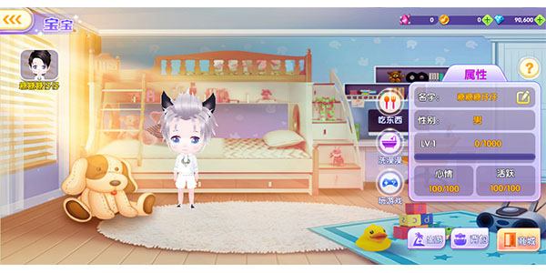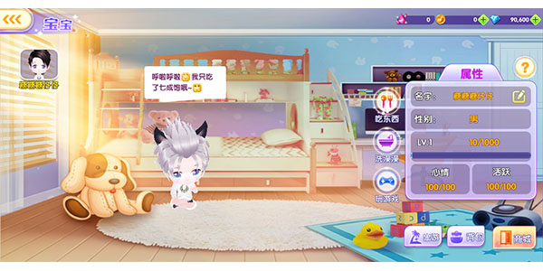 其中吃饭增加宝宝的经验值、玩游戏增加宝宝心情值、洗澡增加宝宝活力值。目前宝宝最高等级5级。