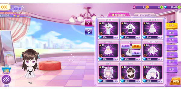 点击宝宝界面商城按钮可以进入宝宝商城为宝宝购买发型、服装、鞋子等。