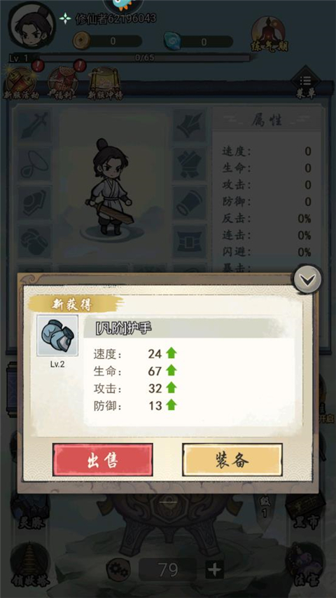 5、获得的装备可以直接穿戴,或一键出售。