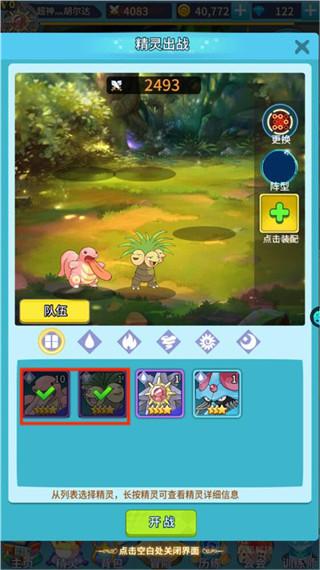 3、在作战前选择要出战的精良,前期的话只提供了四种精灵,后期可以解锁更多更强的精灵