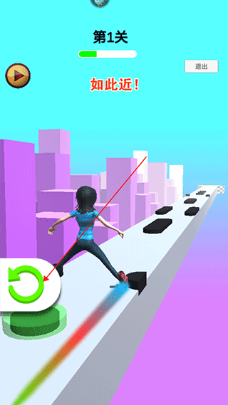 2、左右滑动来操控溜冰鞋,避开障碍,滑动的范围大小会决定角色岔开腿的角度
