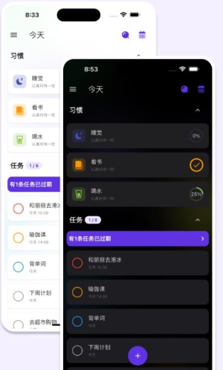 4、考虑到用户的眼睛健康,简一清单还提供了夜间模式。在晚上查看计划的时候,夜间模式会更好地保护您的眼睛。