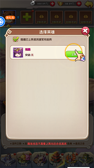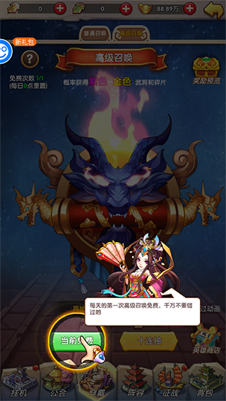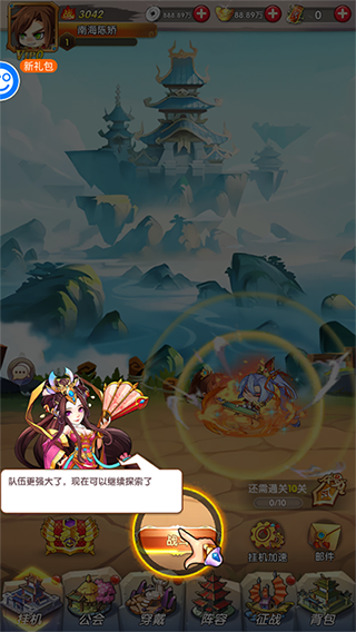 游戏采用乱斗放置挂机的玩法,玩家可以轻松放置角色进行战斗,无需长时间在线操作