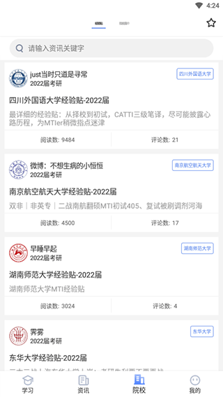 各院校的简介+上岸学长学姐的经验贴+当下的考研资讯热点,帮助您更好的择校和备考。