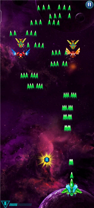 5、面对群体战机时可以通过左右滑动战机来覆盖更多的敌方战机