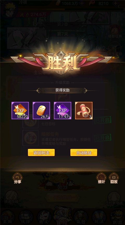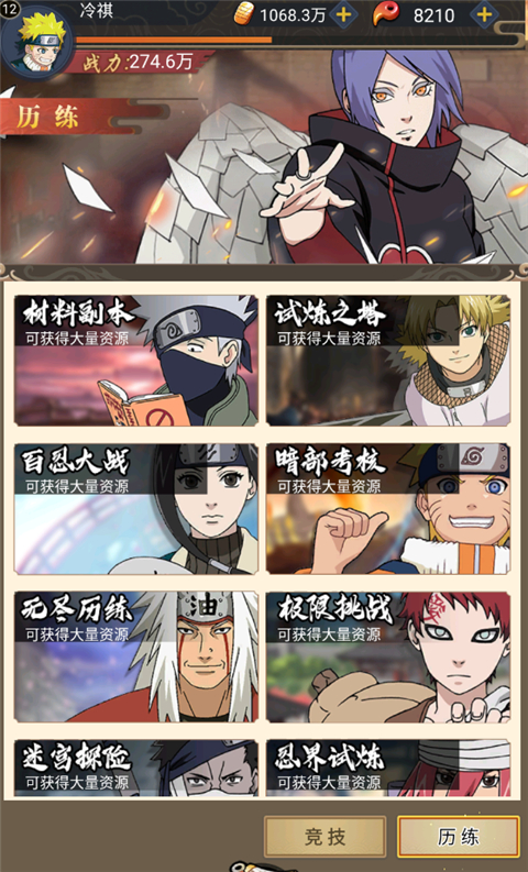 热血格斗手游拥有多个章节可冒险,挑战成功可获得资源碎片奖励,以及PVP、PVE玩法,如竞技场、巅峰竞技、跨服竞技、材料副本、忍者大战等众多玩法等你来体验!