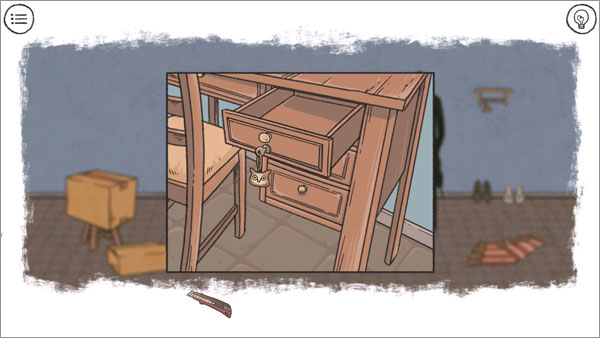玩法简单,玩家可以通过点击右侧的新游戏开始章节,跟随小女孩的视角开启冒险。在房间中寻找线索、解开谜题,甚至可以做一些日常琐事来推进剧情。如果遇到困难,还可以点击右上角的小灯泡查看提示。