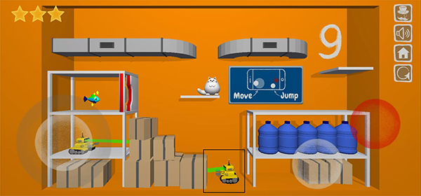 游戏背景设定挺有意思的,Erwin和Max本来过着无忧无虑的生活,结果被机器人抓走做实验,这种反派设计让人讨厌又紧张。第九关的攻略有点复杂,但成功拿到星星并通过关卡时真的很有成就感。总体来说,《双重猫咪》不仅考验反应力和策略思维,还有点惊险刺激,特别适合喜欢挑战的玩家。