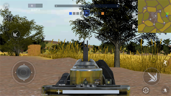5、进入游戏我们需要占领据点,下方虚拟按键玩家可以用来控制人物角色移动以及射击;