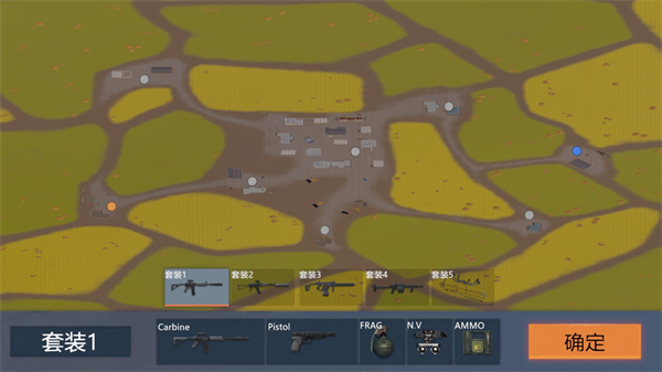 4、这里我们选择一个地图进入,然后选择你要的武器套装,然后点击确定;