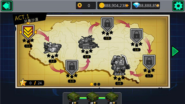 2、完成关卡,获得星星,你就能获得宝箱,在这些宝箱中获得新的装备。
