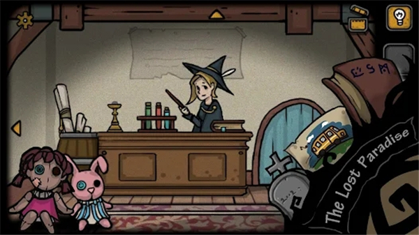 5、这里我们就可以点击莉莉的床,就会睡觉度过一晚了。来到第二天,安娜就说莉莉不见了的对话,对话结束后,我们就点击她的魔法书,多点击几下就可以翻页获得火柴,左边的木桶上还可以获得太阳魔法卷轴。