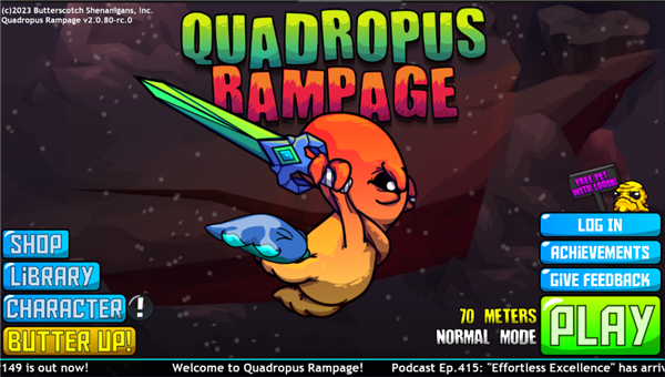狂暴魔法人正玩家将扮Quadropus,从一个地牢入口进到另一个入口,但不要只是急着进到下个入口,最好去到每个角落去搜集道具和武器来强化自己,因为随着关卡的进行,各种强大的怪会陆续出现,如果你没有道具和好的装备,它们可以轻而易举地干掉你,由于游戏中的地牢是没有边界的,下边是深渊,操作不当很容易掉下去,这样会自动进入到下一层地牢哦。