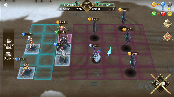 2、战斗时合理安排阵容中角色的位置,注意属性克制关系,针对敌方摆出最有利的阵型。