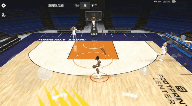 3、背运误导:右侧运球杆键往非持球手斜下快速推一下,然后左摇杆立刻拉到持球手横向最远距离