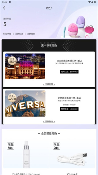 在软件上购买产品不仅可以升级会员,享受专属客服,双倍积分等专属权益,还能获积分,兑换迪士尼乐园影城门票等多重好礼。连续签到赠送优惠卷和抽取新品健发仪的机会,还有积分可以获取。