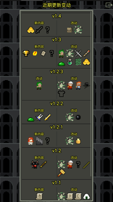 不思议的像素地牢手游有超过150种可供收集并使用的道具,如法杖、戒指、武器和护甲等,玩家可以通过不断向下探险收集这些道具提升战斗力。越向下地牢越难,快成为那个最勇敢的探险者吧!