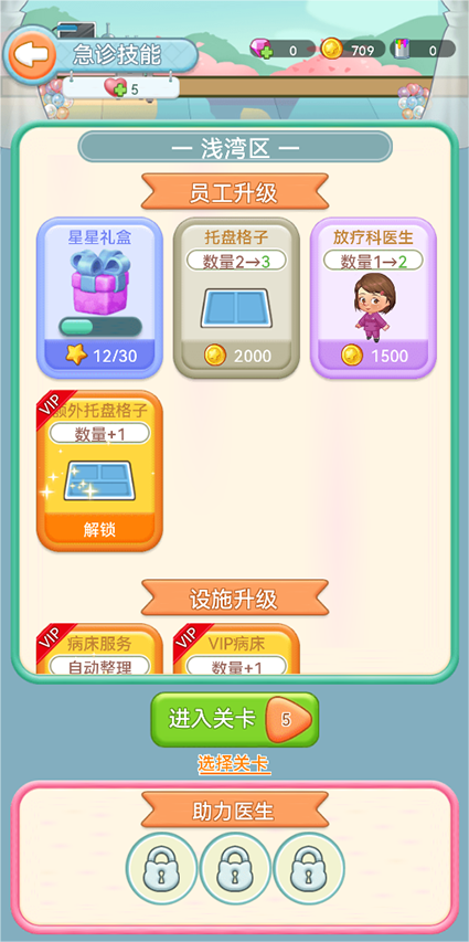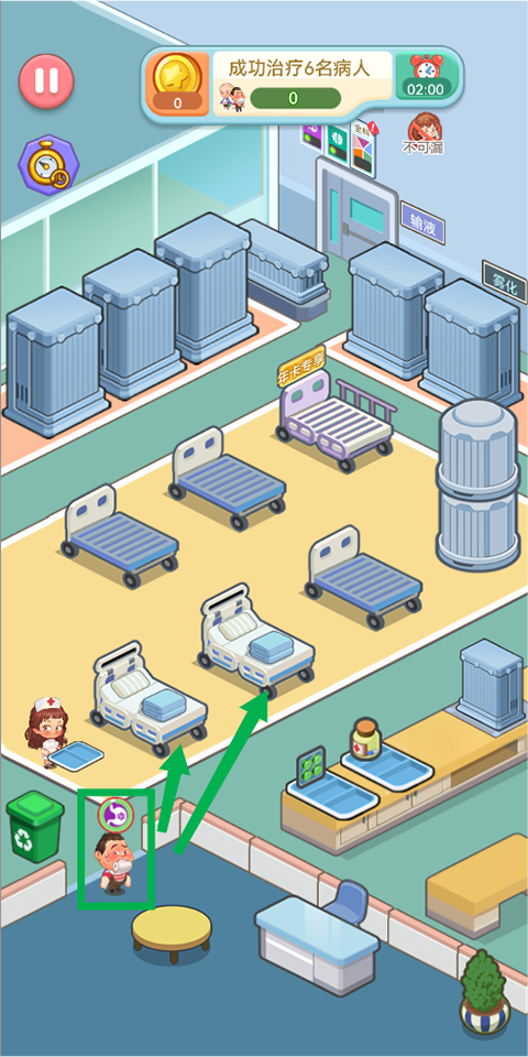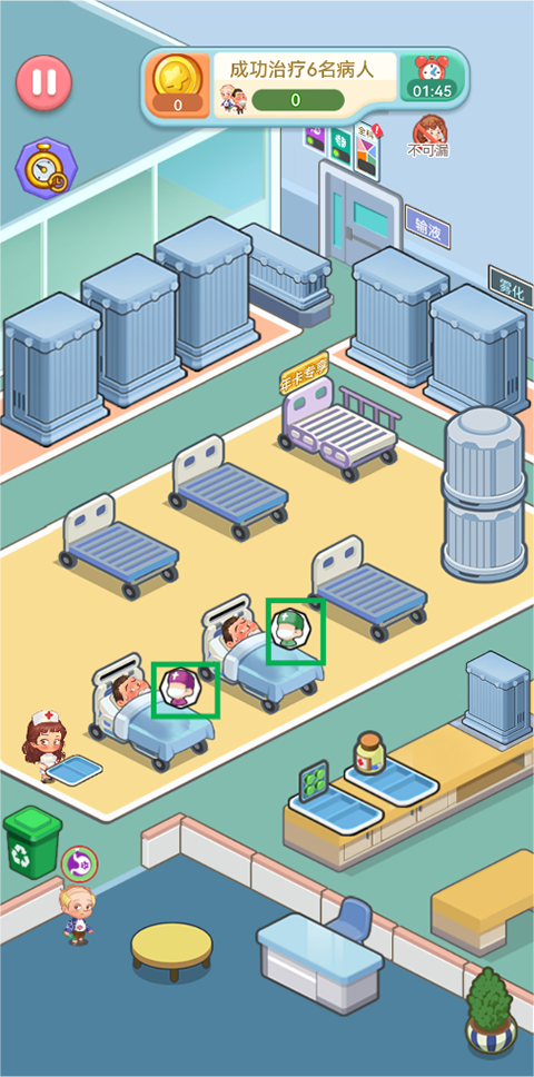 2、点击医生标识,会有对应医生来医治,随着等级的提升,医生数量会增多。