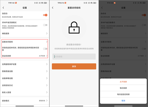 ①设置访问密码:设置或重置安卓客户端的访问密码;